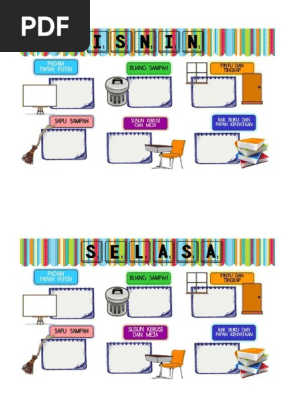 Jadual tugas murid from image.slidesharecdn.com Seseorang menceritakan keburukan orang lain, seperti pelitnya orang lain. Selain itu, yang bertugas membagi jadwal piket adalah ketua kelas atau berdasarkan kesepakatan bersama melalui musyawarah kelas. Pada akhir artikel ini ada link untuk download file yang bisa kalian edit. Jadwal pelaksanaan ppdb dibedakan berdasarkan jenjang pendidikan dan jalur yang diikuti. Kompetensi manajerial adalah kompetensi yang mendasari sebuah karakteristik dari individu dengan merujuk pada kriteria efektif dan kinerja unggul dalam jabatan struktural disebuah pemerintahan. Beberapa contoh surat tugas yang bisa anda jadikan refrensi untuk membuat surat bagi karyawan anda maupun surat yang dibutuhkan oleh contoh surat tugas pelatihan ini di maksudkan sebagai surat pengantar yang diberikan oleh sebuah instansi sebagai bentuk koodinasi dengan pihak terkait. Semoga contoh desain jadwal piket kreatif dan unik terbaru ini bermanfaat untuk kalian. Contoh laporan magang di sekolah dan perusahaan 2021 untuk siswa smk maupun mahasiswa yang baik dan benar, lengkap format dan isinya.