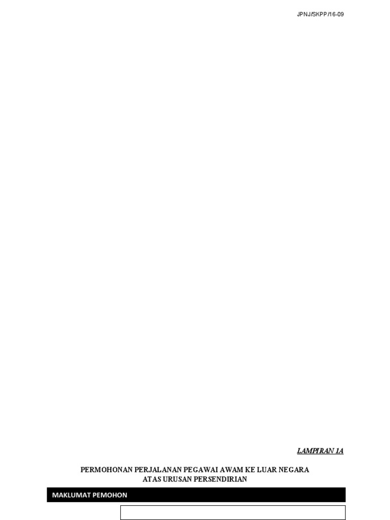 Related : Permohonan Perjalanan Pegawai Awam Ke Luar Negara Atas Urusan Persendirian - Permohonan keluar negeri atas urusan persendirian ini hendaklah diisi dua (2) minggu sebelum pemohon keluar negeri..