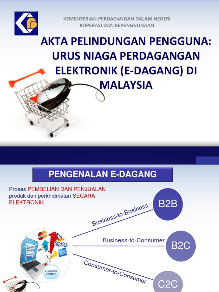 Semakan akta perlindungan pengguna 1999 (akta 599) akta perlindungan pengguna (app) 1999 (atau akta 599) telah berkuatkuasa pada 15 november 1999 untuk mengadakan peruntukan bagi perlindungan pengguna. The concept of caveat emptor caveat emptor is derived from the latin maxim which means that let the buyer beware. Our malaysian government has make an effort to protect the rights of online buyer from fraud during shopping online by making a compulsory for online seller to disclose their business information. Akta perlindungan pengguna 1999 perlindungan kepada pengguna melalui transaksi elektronik. Sebelum 1999, urusan jualan barang yang melibatkan pengguna di malaysia adalal dikawal oleh akta jualan barangan 1957 (ajb) dan akta kontrak 1950 (ak).